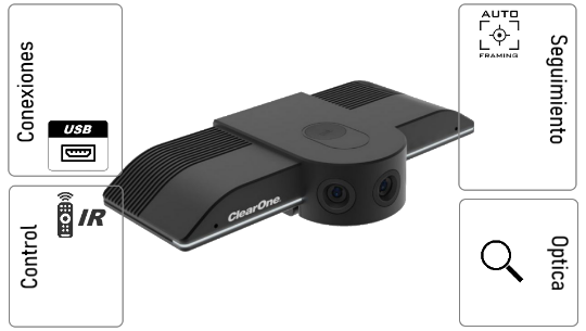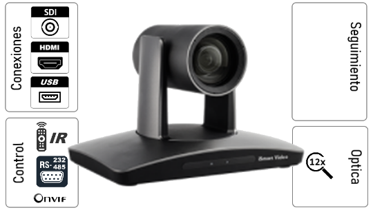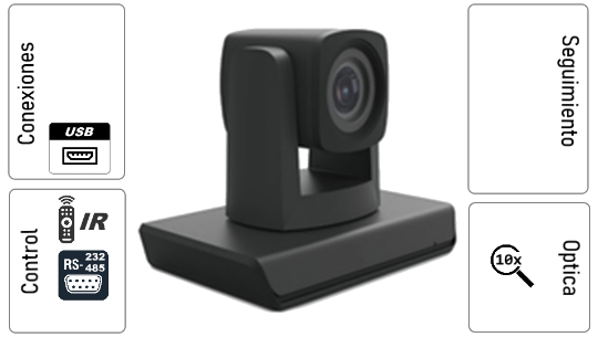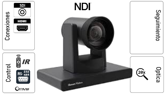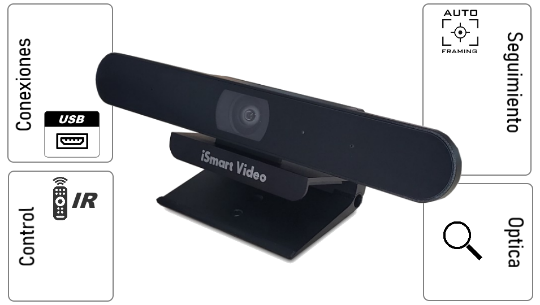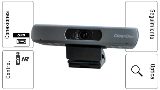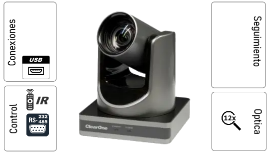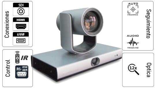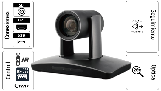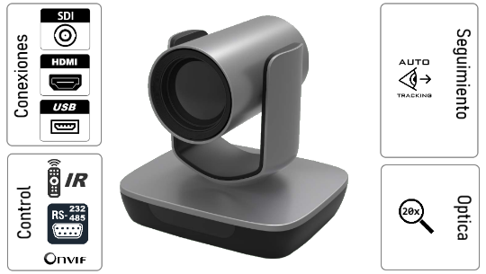 Cámara PTZ con Inteligencia avanzada que ubica y enmarca a la persona que esta hablando automáticamente. Incluye una segunda cámara ePTZ que permite PiP del plano general del salón.